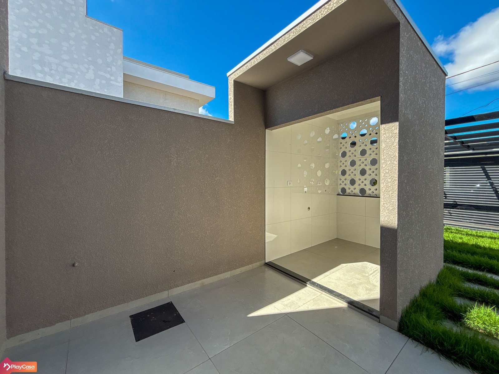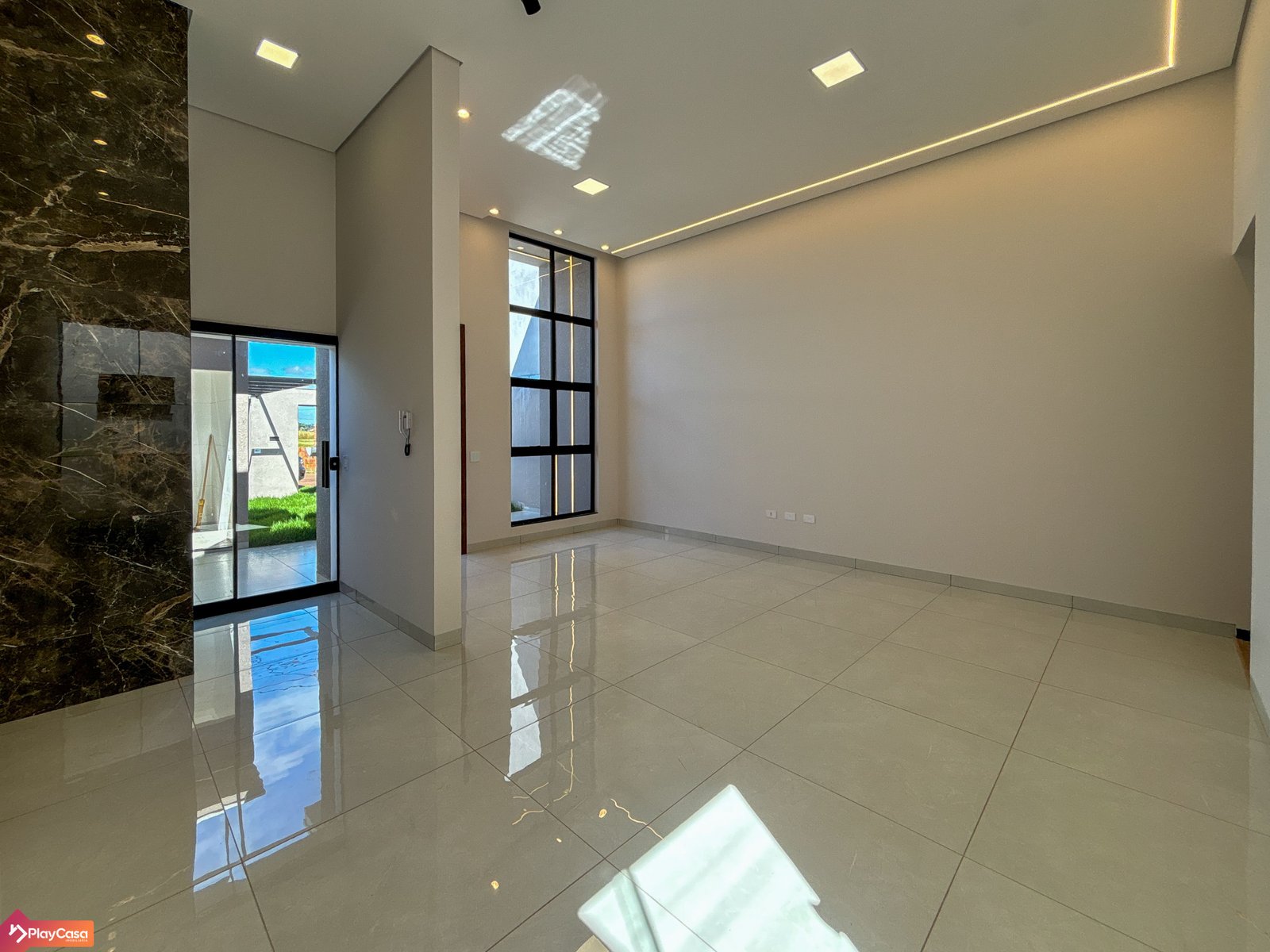 Fachada moderna com iluminação em LED em “L”