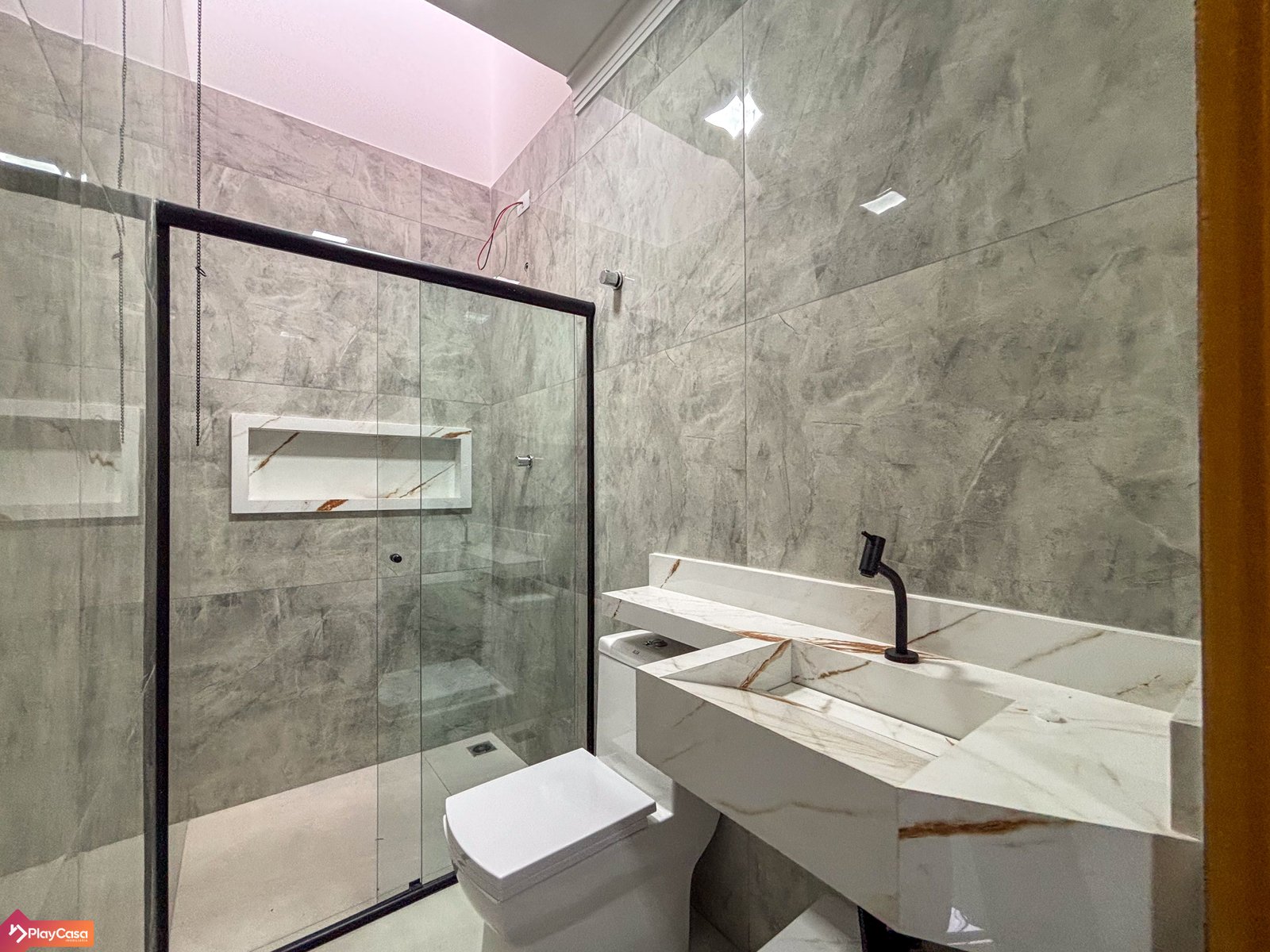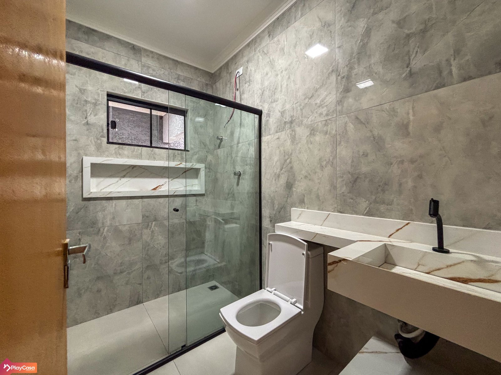 Composta por 3 quartos (sendo uma suíte), sala, cozinha, banheiro social, lavanderia, garagem e churrasqueira.