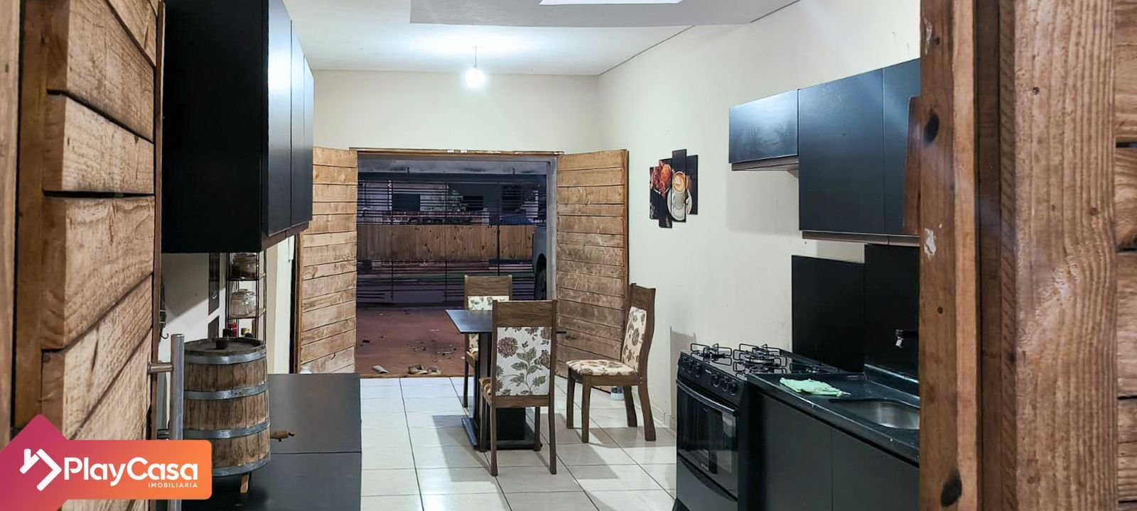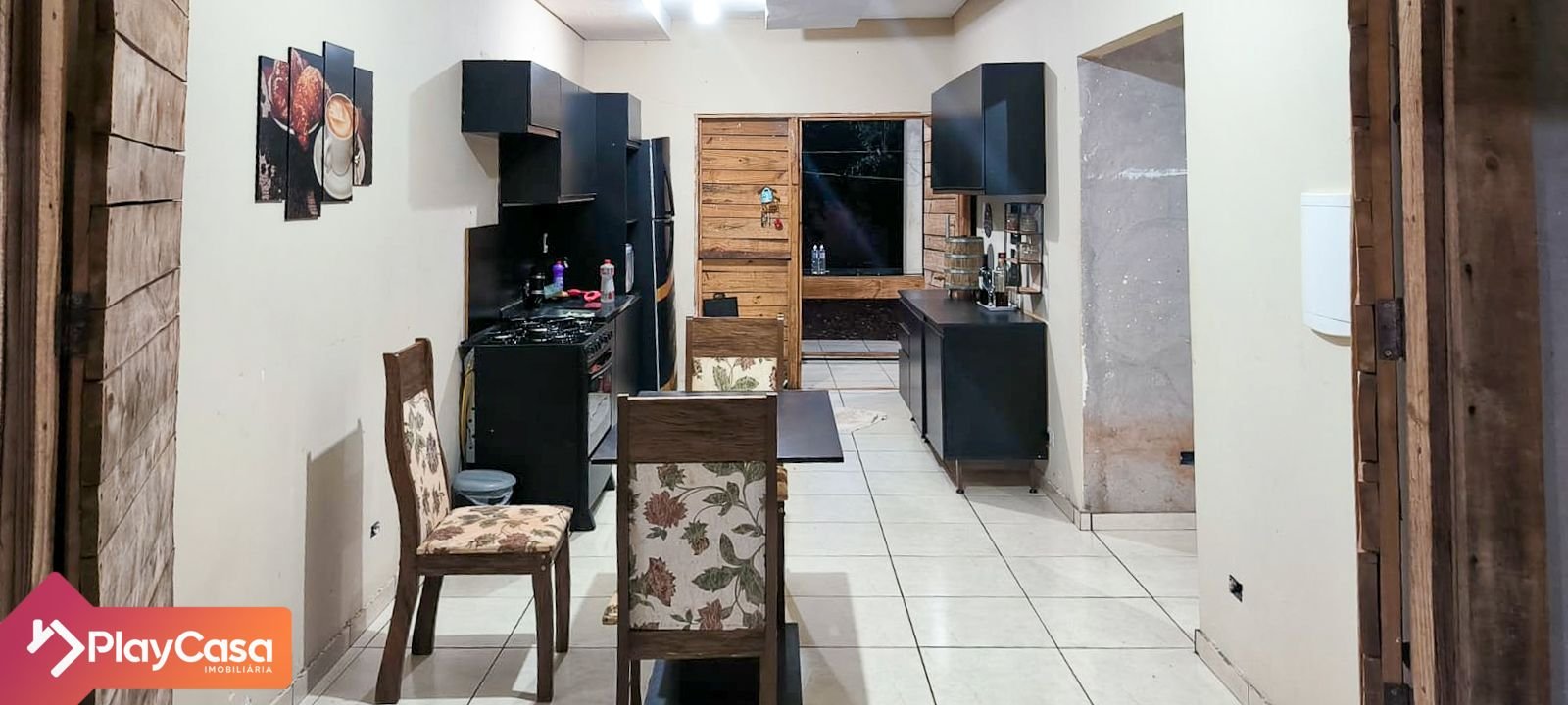 Possui 1 suíte com closet, 2 quartos, banheiro social completo, sala de estar/TV, sala de jantar integrada com a cozinha, lavanderia, despensa, área externa com fogão a lenha e churrasqueira, além de garagem coberta para 4 carros.