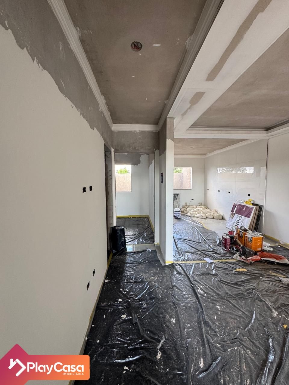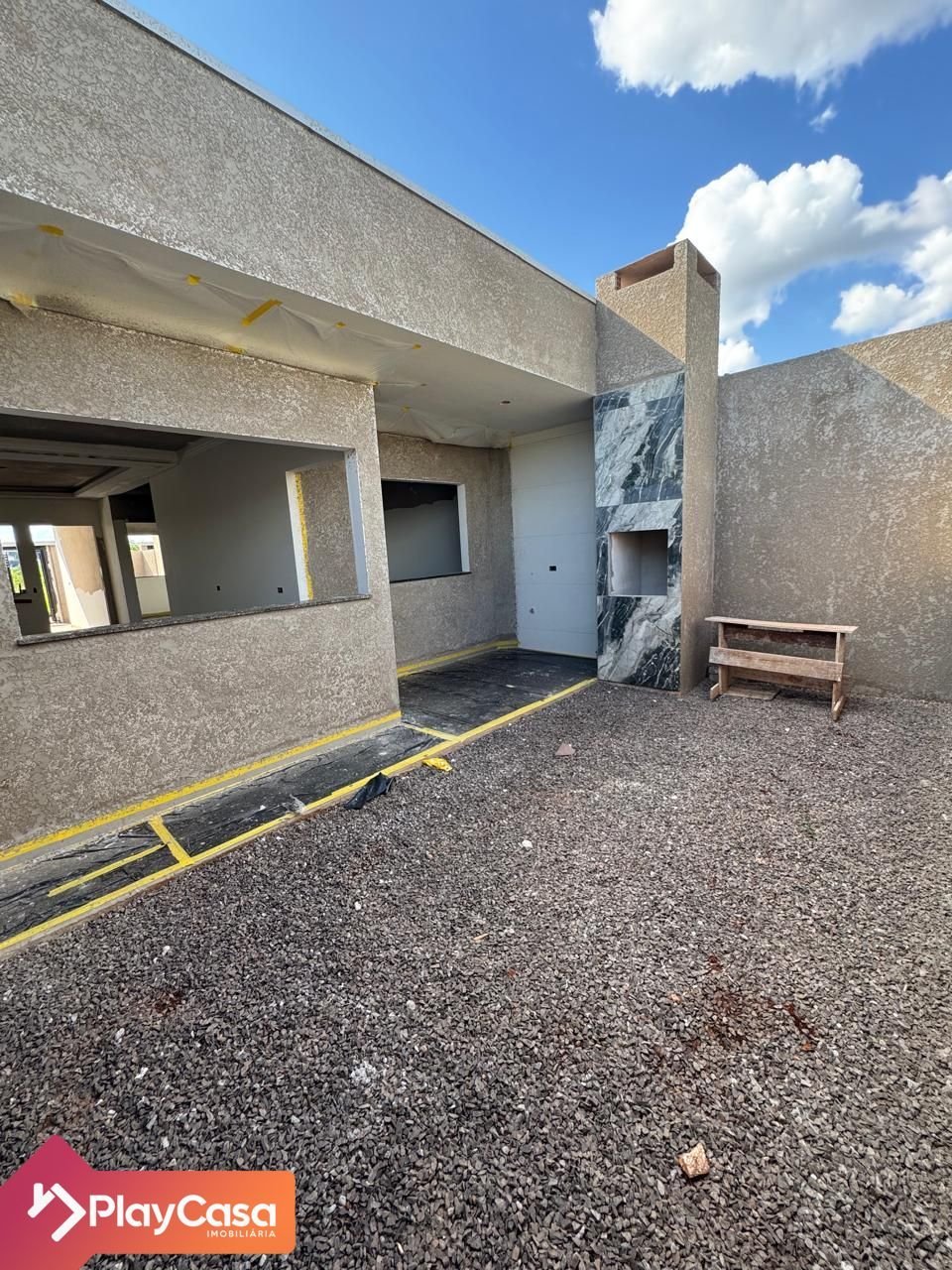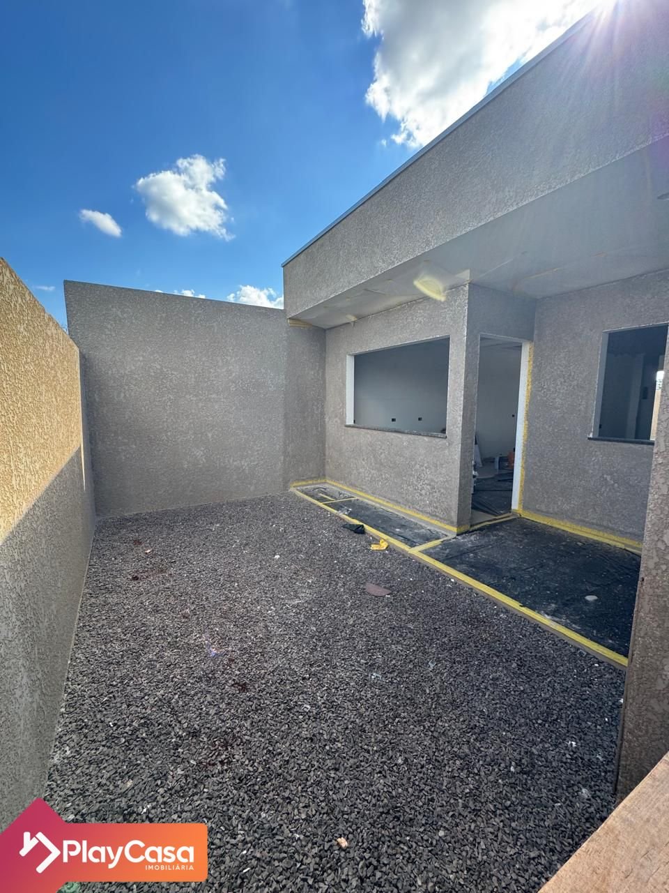 O imóvel conta com 2 quartos, sendo 1 suíte, sala e cozinha integradas, churrasqueira e sobra de terreno nos fundos.