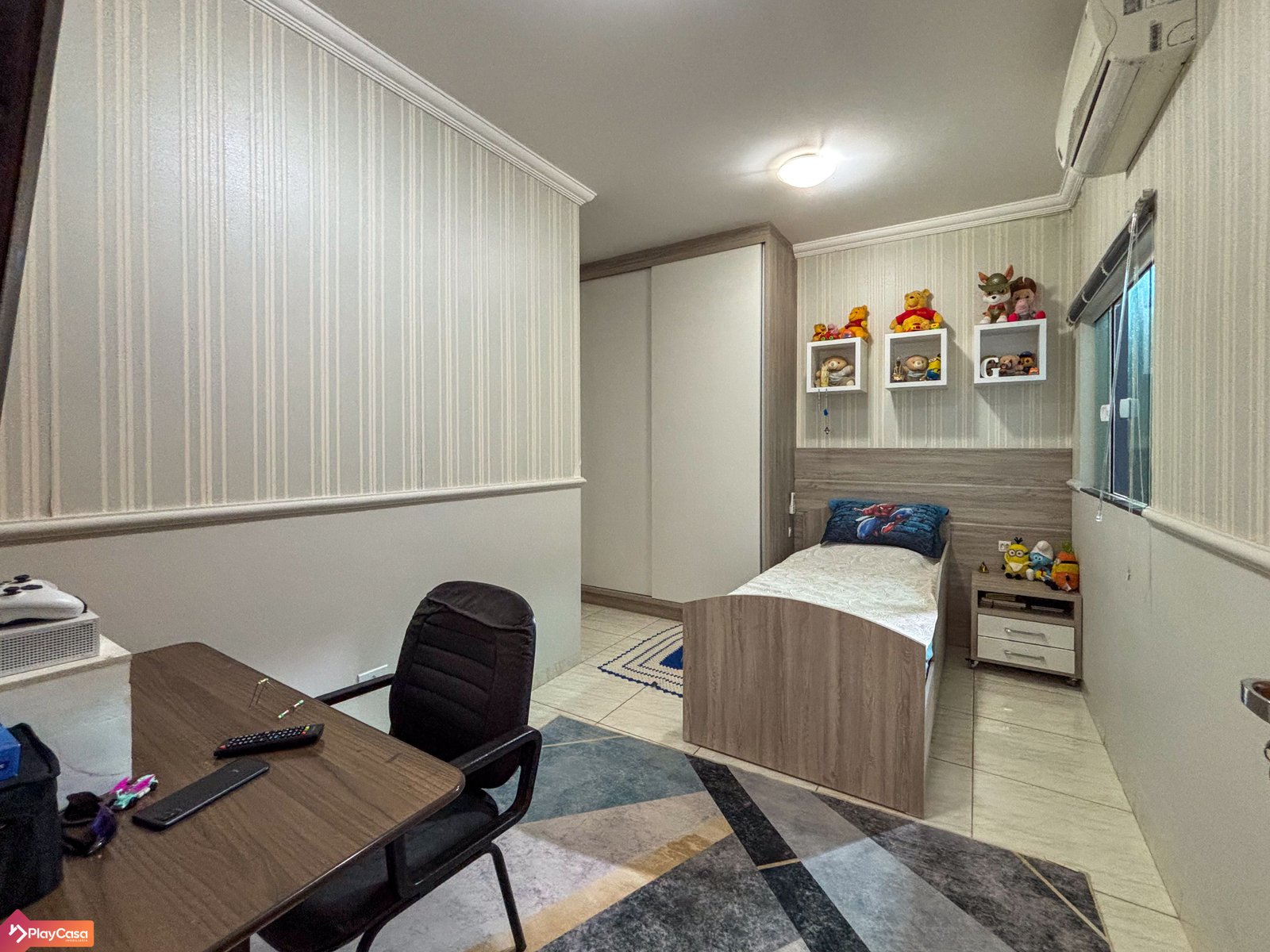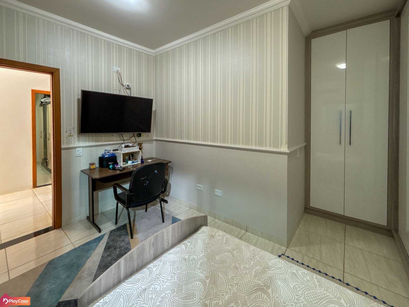 Conta com móveis planejados na suíte, em 1 quarto e na cozinha.